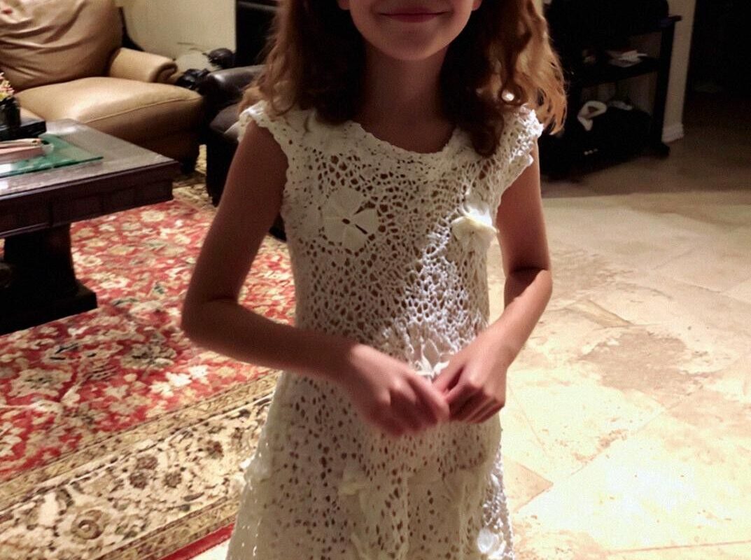On the wedding day, Lucy twirled down the aisle in a simpler dress I crocheted overnight. She was radiant.