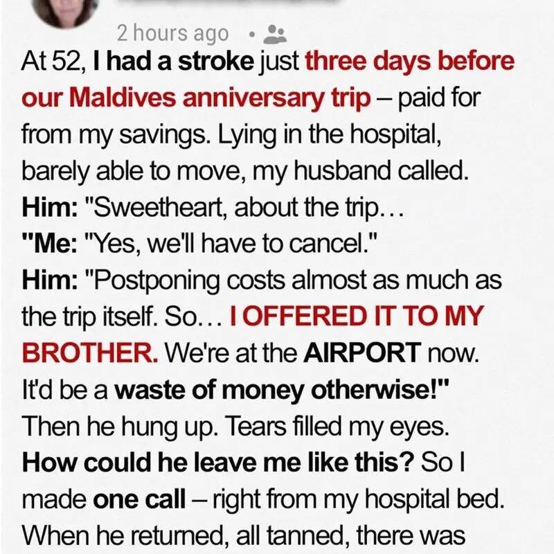 But when I needed him the most, he chose a tropical escape over his own wife.